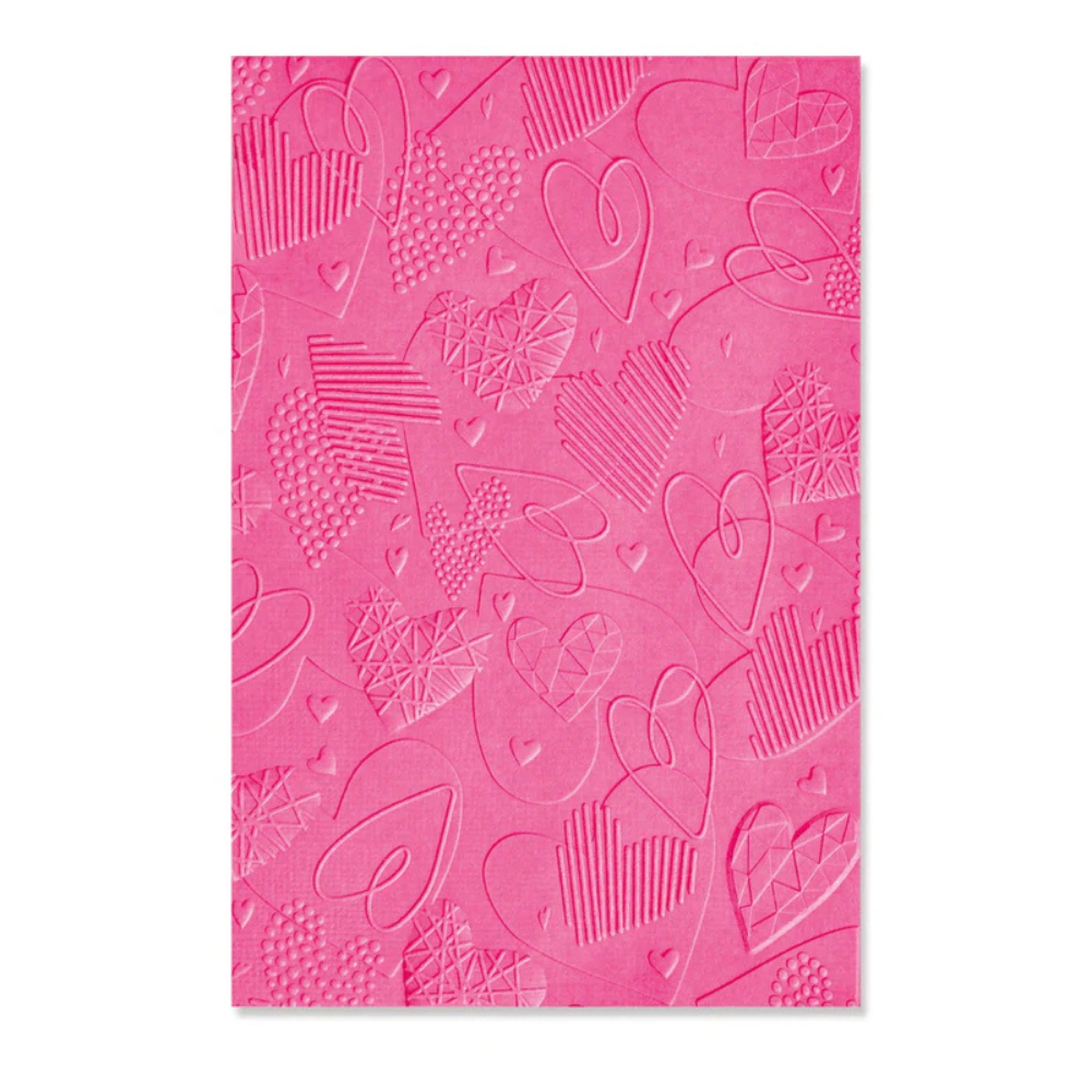 Show somebody you love them with this Sizzix 3D Textured Impressions - Mark Making Hearts Embossing Folder.